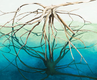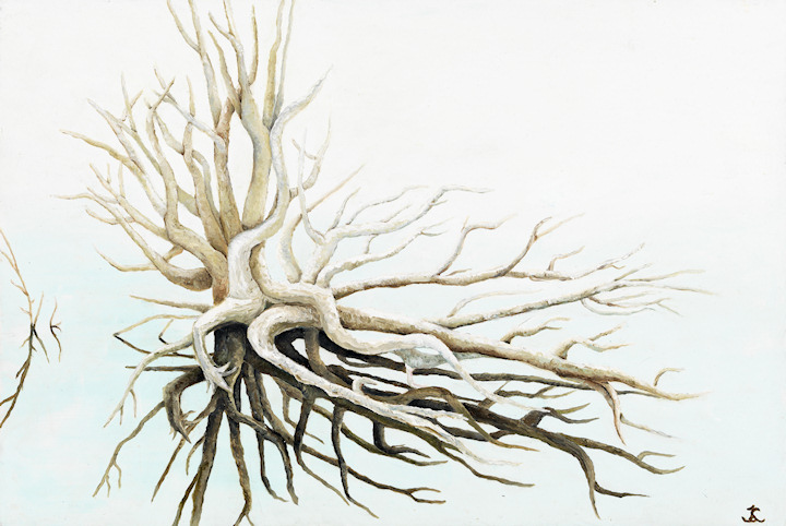 In this new series, light and shadow structures create emotional drama which plays upon an inanimate object like driftwood, that might otherwise seem unremarkable -- by highlighting, for instance, the twist in a piece of driftwood which creates an intentional illusion of volume through a single light source. In the paintings the reflection becomes a playground to explore, light and undertones. The composition becomes rich with complexity, both from the subject itself and from the light source which creates the reflection. Lights and darks are interdependent and inseparable. Without their contrasts we would be unable to see or understand the world.