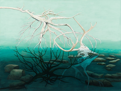 My current photographs and paintings explore multiple surfaces as well as the illusion of the reflection that creates space, movement and composition underneath the water.? The surfaces of my paintings achieve a range of realistic textural effects: petrified wood, water, rocks, and bones are all described through contrasts of tone.? I use layers of thinned paint to create the illusion of texture in my work.